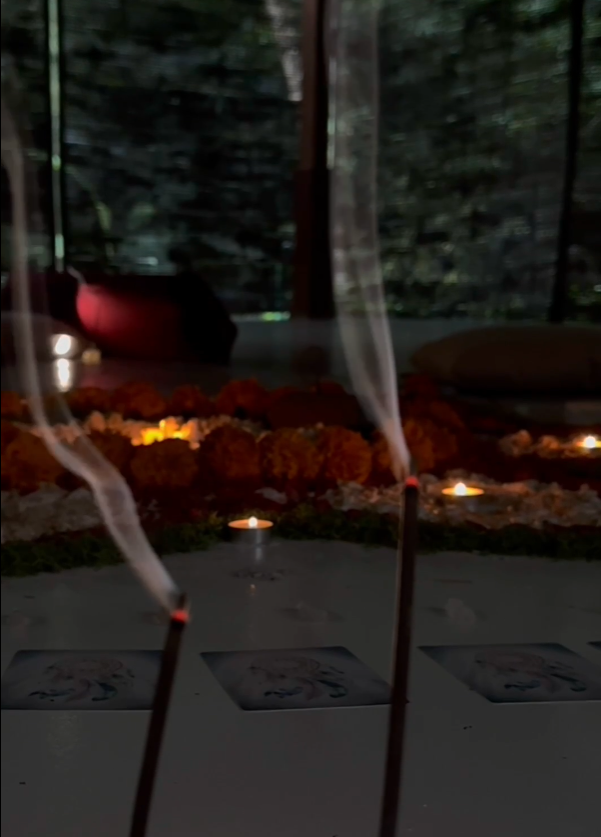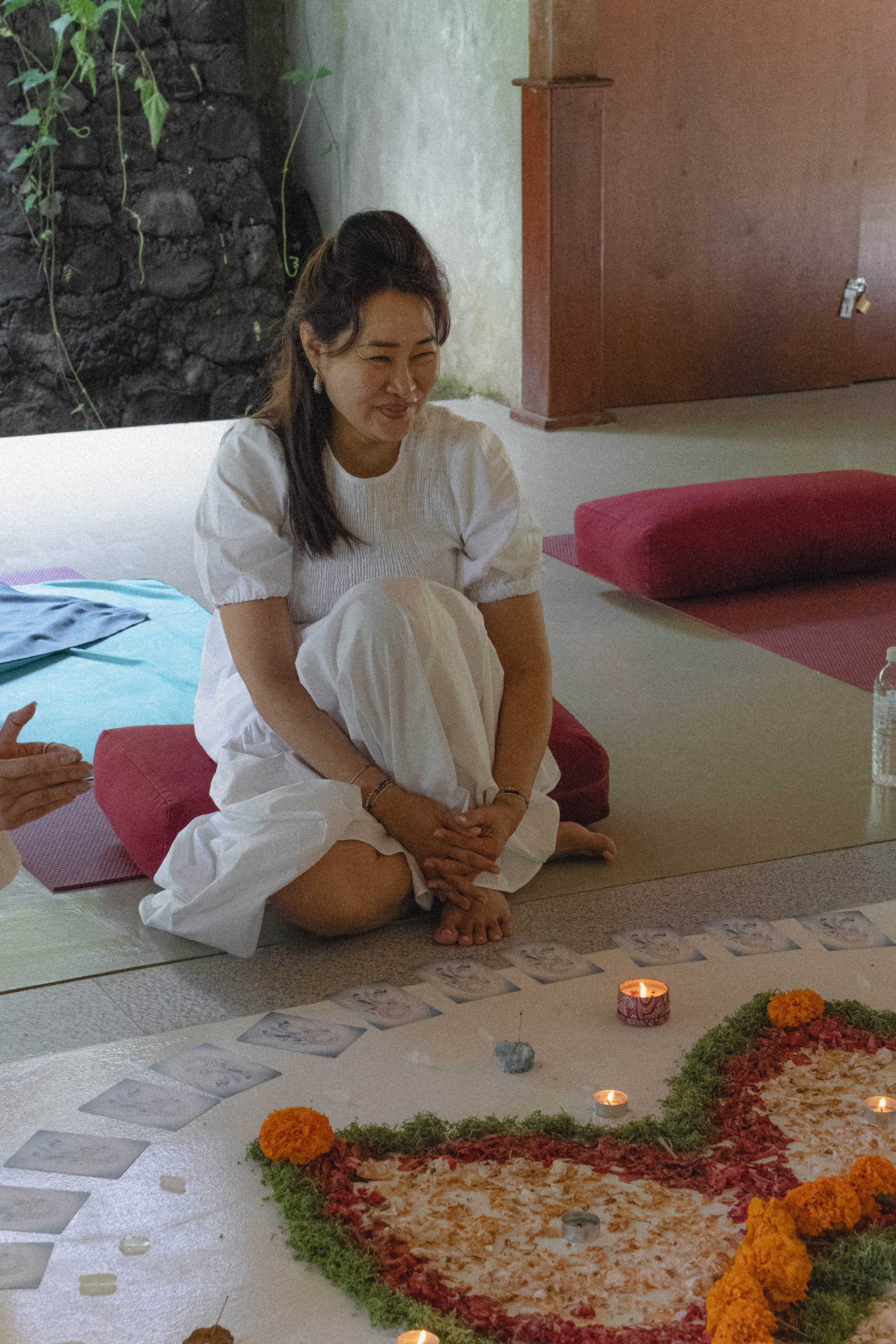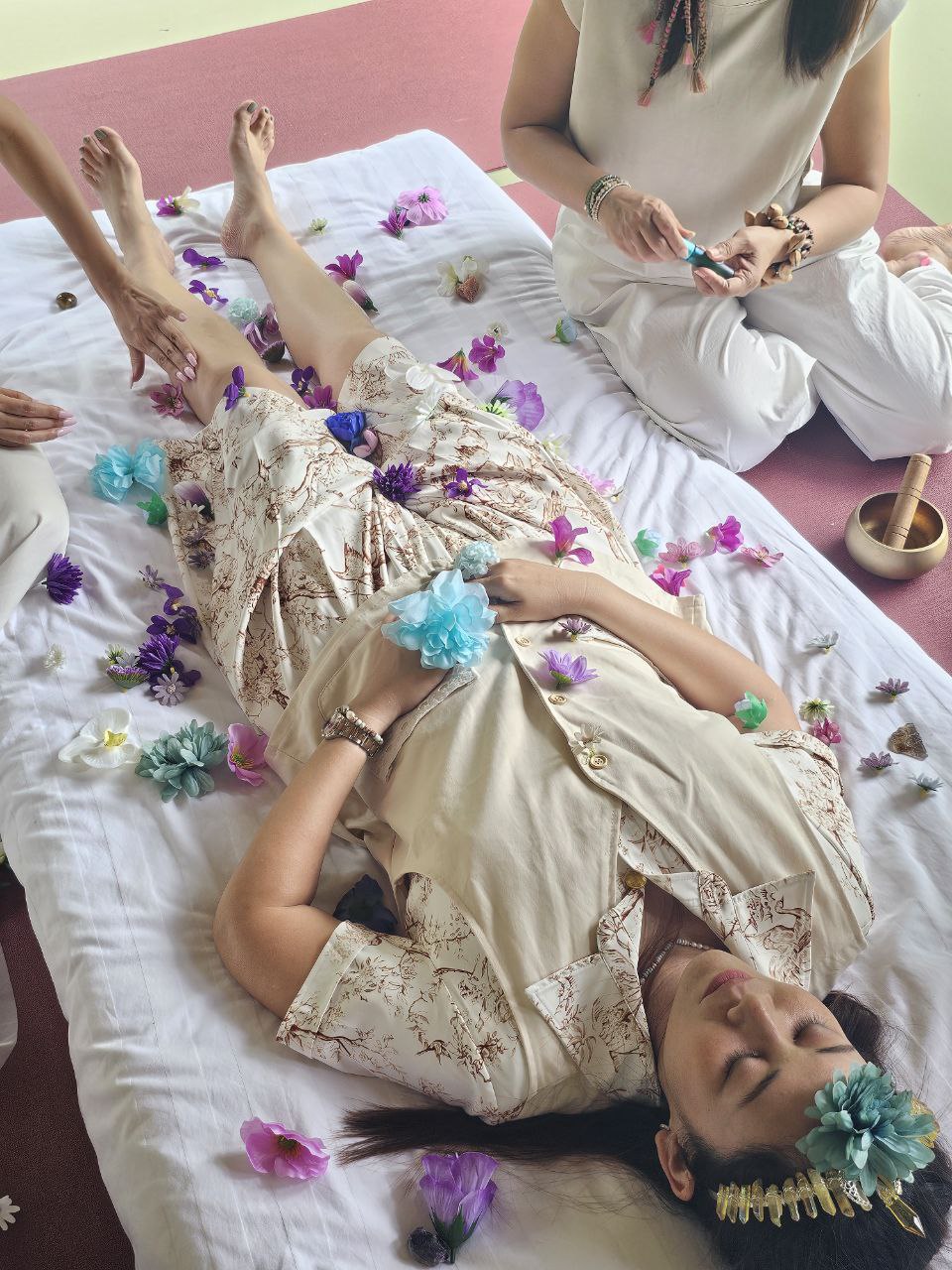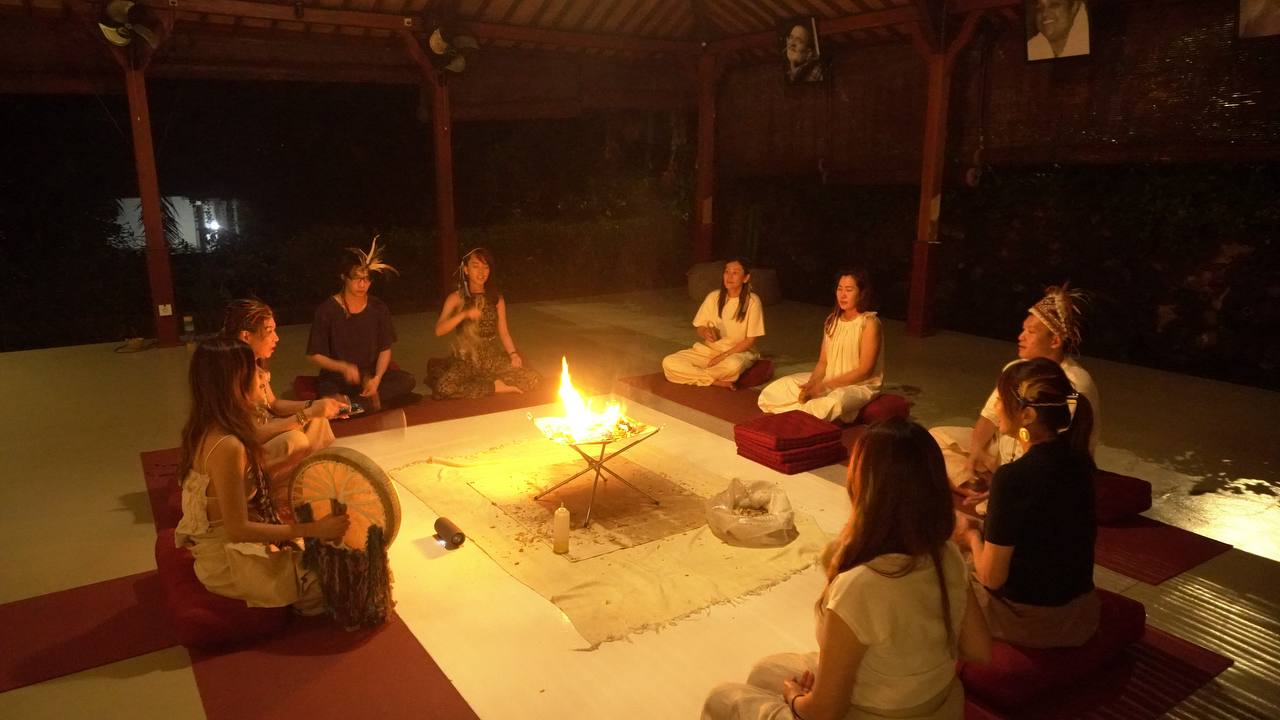 Soul rebirth ritual, fire ceremony, and heart blessing with floral offerings​