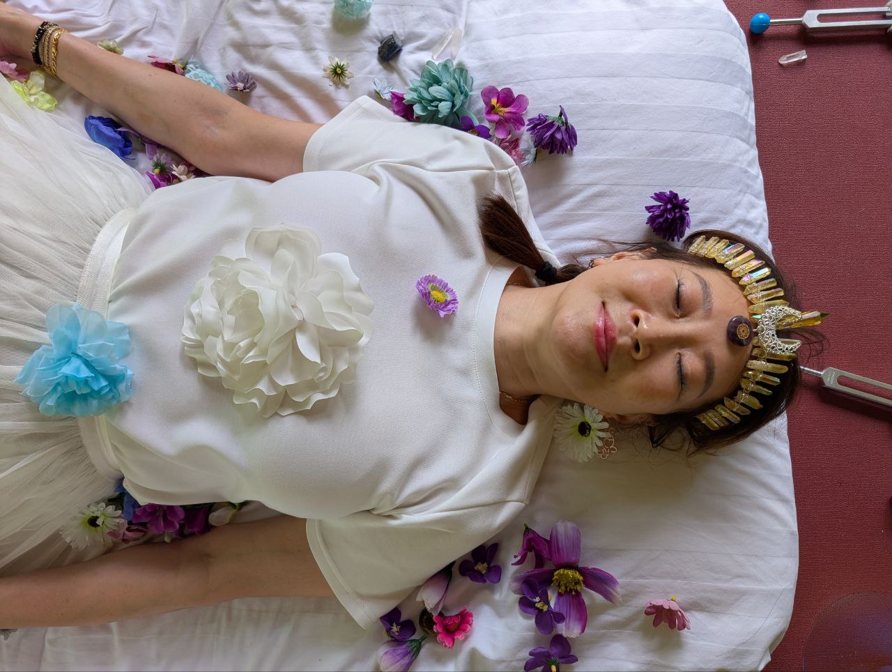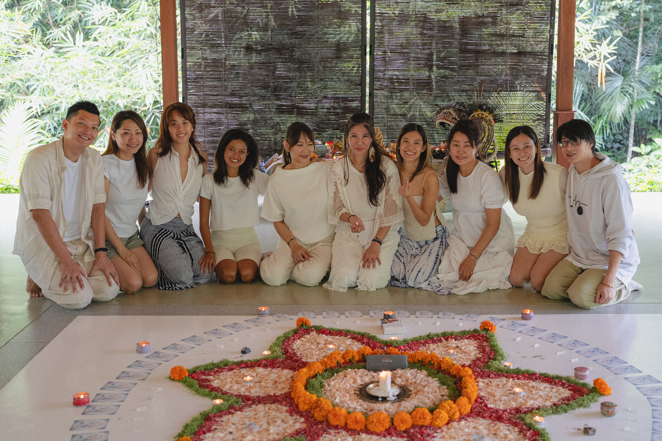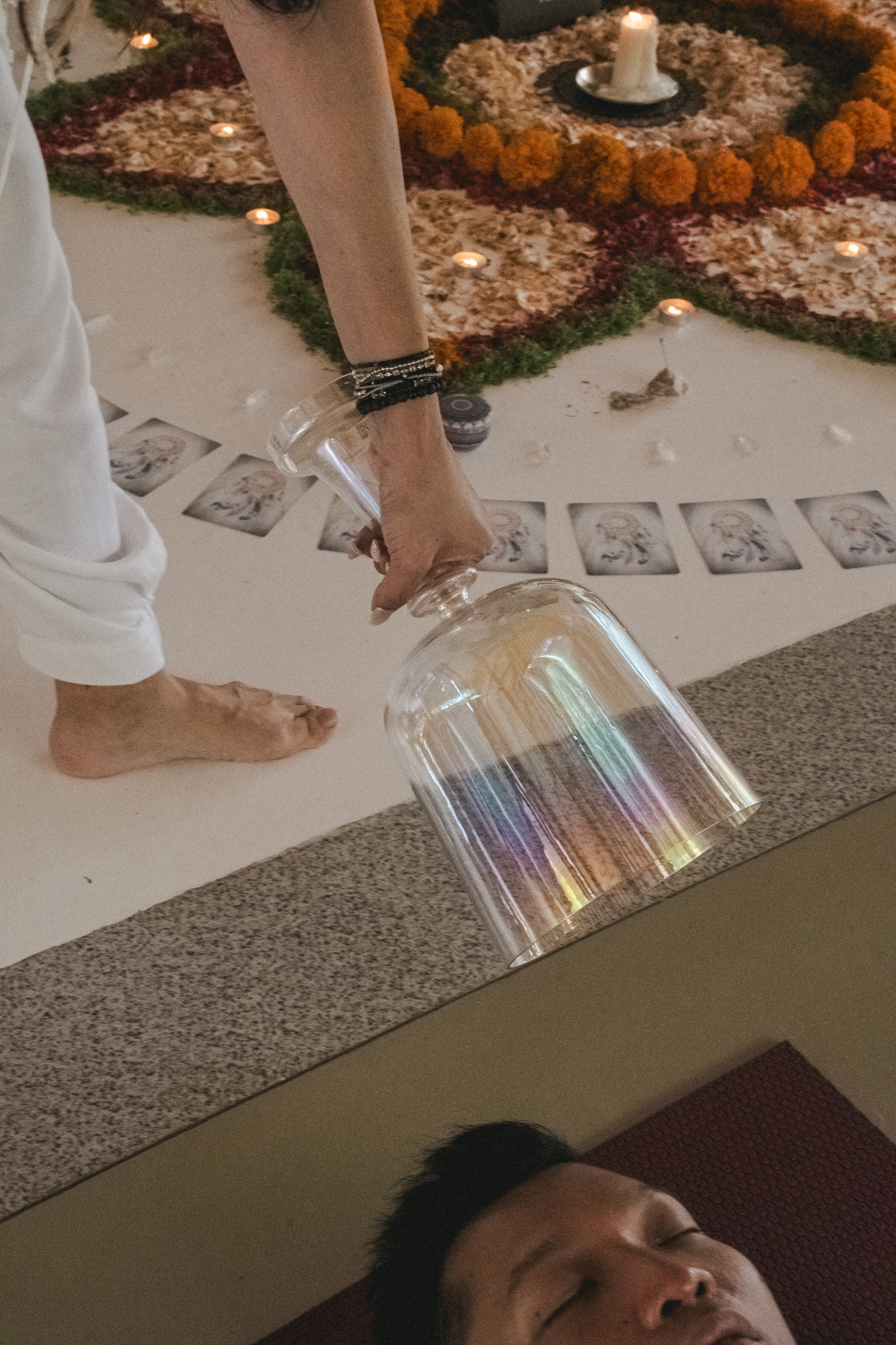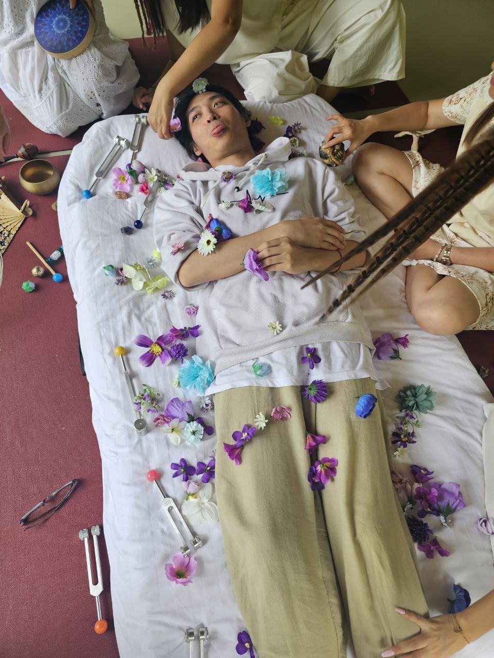 Soul rebirth ritual, fire ceremony, and heart blessing with floral offerings​